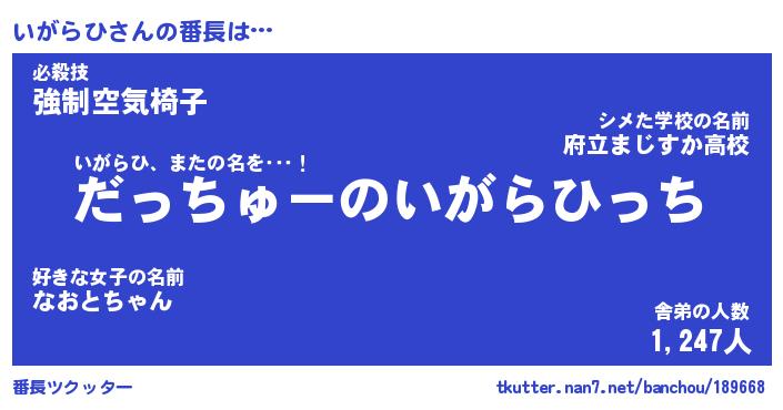 | 意味不明あだ名 | 『ペロリンいがらひ』『永久保存いがらひ』 |