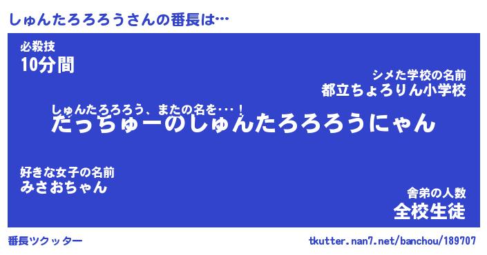 | ヒーロー風カッコイイあだ名 | 『スーパーシュンタロロロウ』 |