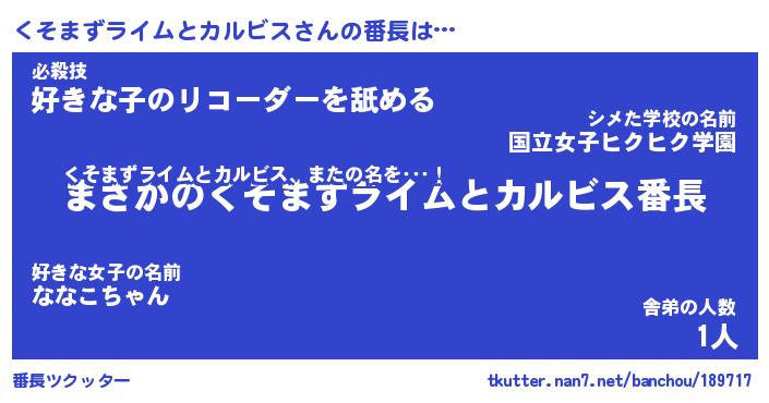| 意味不明あだ名 | 『ペロリンくそまずライムとカルビス』 |