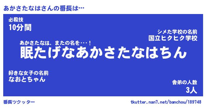 | ヘコむあだ名 | 『あかもー』『牛乳』『あかぷりん』 |
