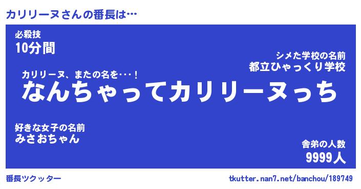 | ヒーロー風カッコイイあだ名 | 『スーパーカリリーヌ』『魔戒騎士カリ』 |