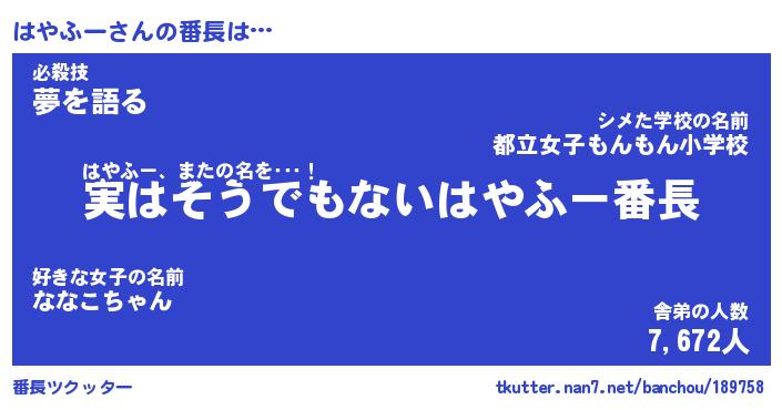 | 肩書あだ名 | 『はやふー店長』『はやふー大統領』 |