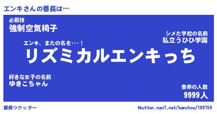 | ヒーロー風カッコイイあだ名 | 『スーパーエンキ』『ウルトラエンキマン』 |