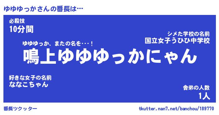 | ファンタジー風あだ名 | 『ユユフェル』『エターナルユユユッカー』 |