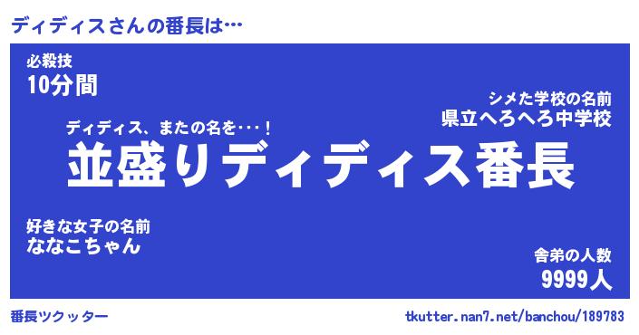 | ヒーロー風カッコイイあだ名 | 『スーパーディディス』『天弓騎士ディ』 |