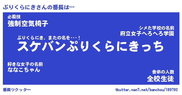| ヒーロー風カッコイイあだ名 | 『スーパープリクラニキ』『暗黒騎士プリ』 |
