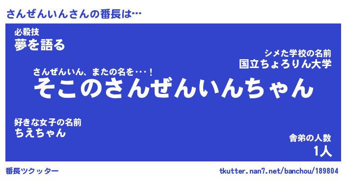 | 男性向けラノベタイトル風あだ名 | 『さんぜんいんの憂鬱』 |