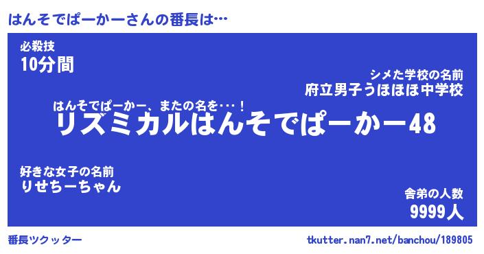 | ポケモン風あだ名 | 『ハンチュウ』『ハンソダネ』 |