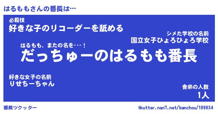 | 伝説のあだ名 | 『伝説のスナイパーはるもも』 |
