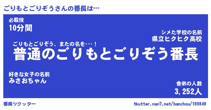 | ヒーロー風カッコイイあだ名 | 『スーパーゴリモトゴリゾウ』 |
