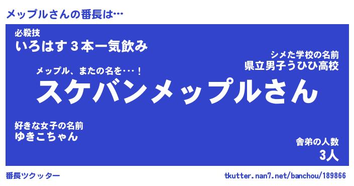 | 意味不明あだ名 | 『ペロリンメップル』『永久保存メップル』 |
