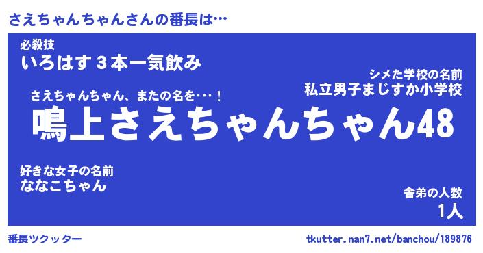 | 意味不明あだ名 | 『ペロリンさえちゃんちゃん』 |