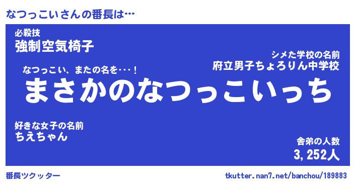 | ヘコむあだ名 | 『なつにゅー』『つくし』『なつお』 |