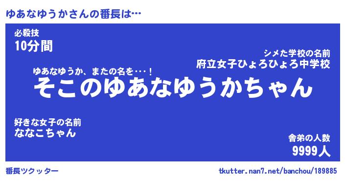 | 伝説のあだ名 | 『不死鳥のスナイパーゆあなゆうか』 |