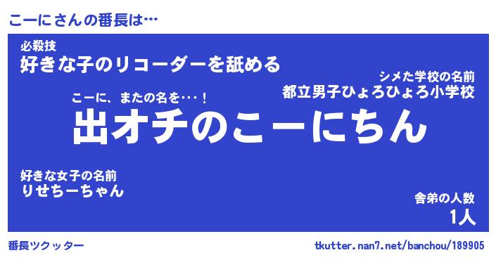 | 意味不明あだ名 | 『ペロリンこーに』『こーにフォーエバー』 |
