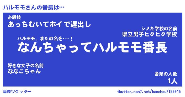 | ファンタジー風あだ名 | 『ハルフェル』『エターナルハルモモー』 |