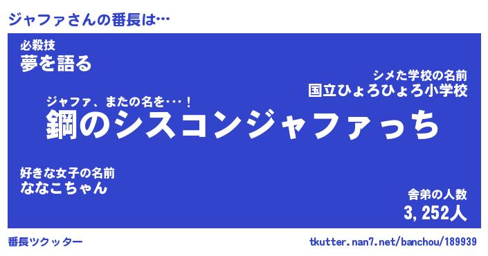 | 意味不明あだ名 | 『ペロリンジャファ』『永久保存ジャファ』 |