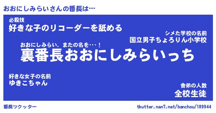 | 欧米人風あだ名 | 『マイケルおおにしみらい』 |