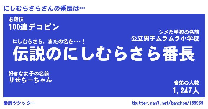 | ポケモン風あだ名 | 『ニシチュウ』『ニシムダネ』 |
