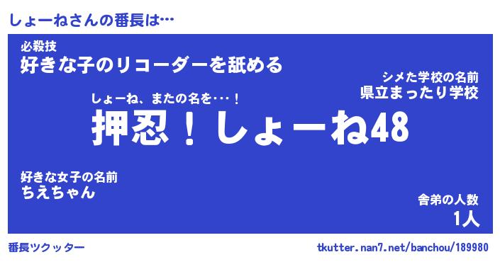 | 意味不明あだ名 | 『ペロリンしょーね』『永久保存しょーね』 |