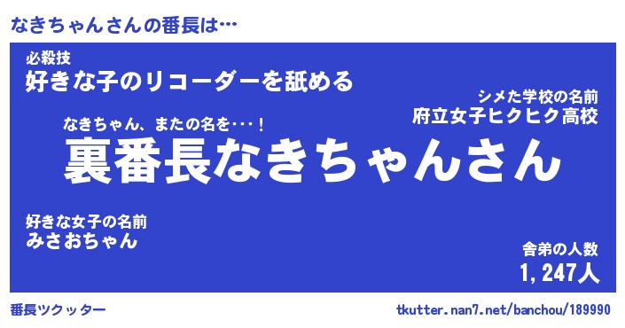 | ヒーロー風カッコイイあだ名 | 『スーパーナキチャン』『銀牙騎士ナキ』 |