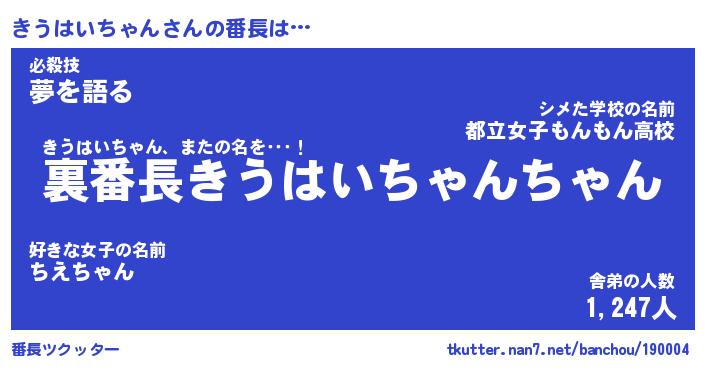 | ヒーロー風カッコイイあだ名 | 『スーパーキウハイチャン』 |