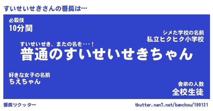 | ヒーロー風カッコイイあだ名 | 『スーパースイセイセキ』『暗黒騎士スイ』 |