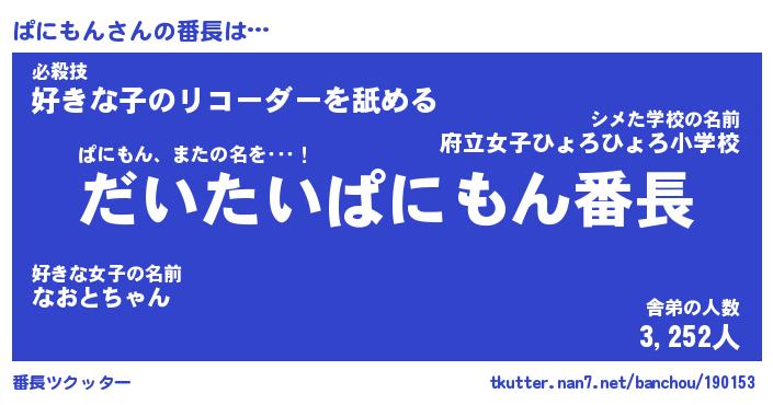 | 肩書あだ名 | 『ぱにもん社長』『ぱにもん大統領』 |