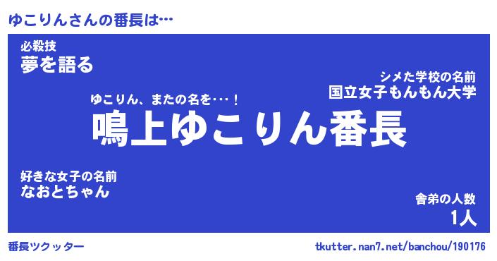 | 意味不明あだ名 | 『ペロリンゆこりん』『永久保存ゆこりん』 |