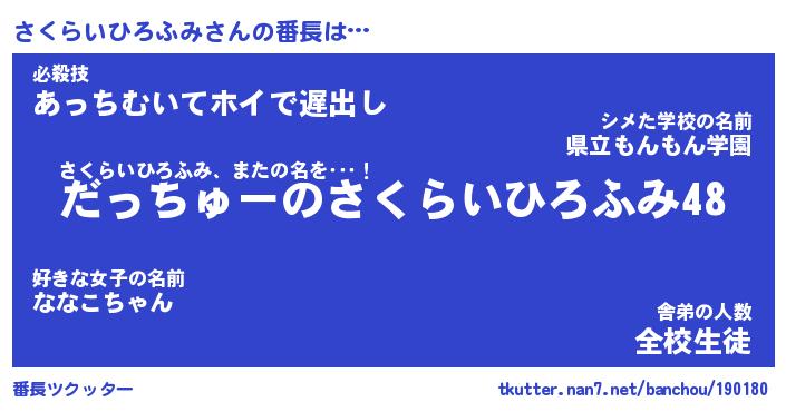 | 伝説のあだ名 | 『伝説のスナイパーさくらいひろふみ』 |