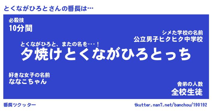 | ポケモン風あだ名 | 『トクチュウ』『トクナダネ』 |
