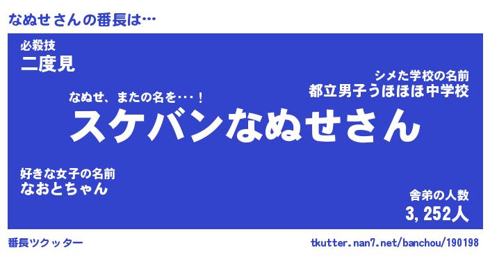 | 意味不明あだ名 | 『ペロリンなぬせ』『なぬせフォーエバー』 |
