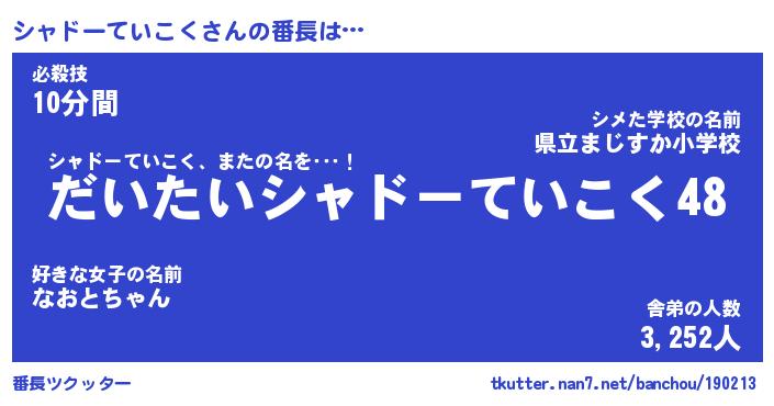 | 男性向けラノベタイトル風あだ名 | 『シャドーていこくの憂鬱』 |