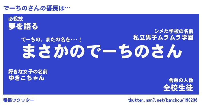 | 意味不明あだ名 | 『ペロリンでーちの』『永久保存でーちの』 |