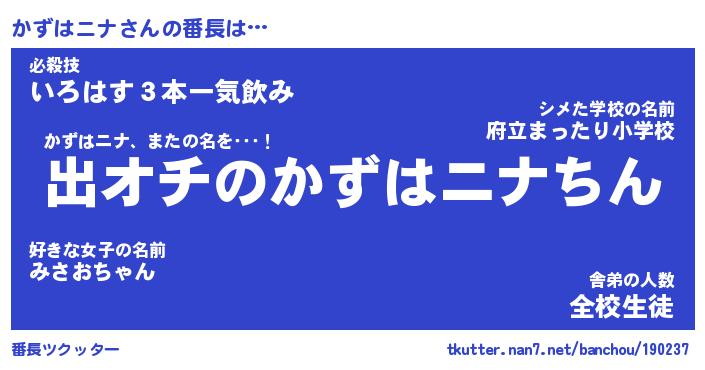 | ファンタジー風あだ名 | 『カズフェル』『エターナルカズハニナー』 |