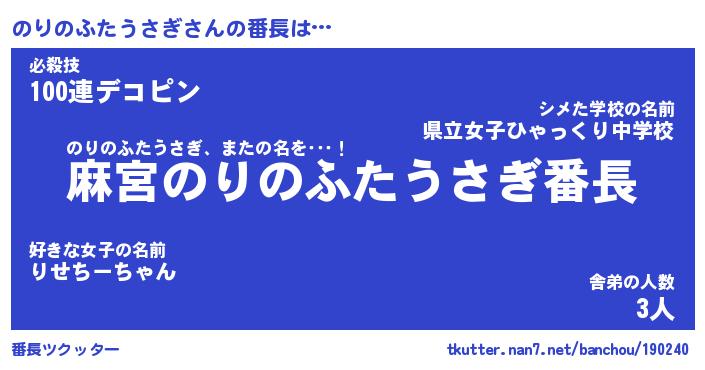 | 伝説のあだ名 | 『不死鳥のスナイパーのりのふたうさぎ』 |