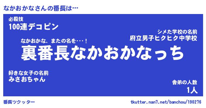 | ヒーロー風カッコイイあだ名 | 『スーパーナカオカナ』『黄金騎士ナカ』 |
