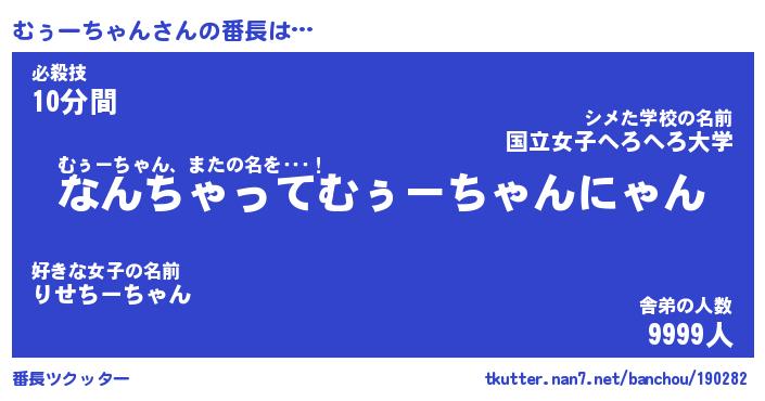 | 意味不明あだ名 | 『ペロリンむぅーちゃん』 |