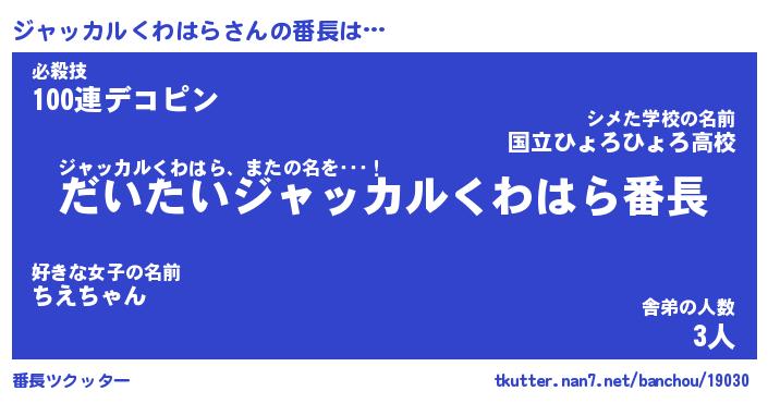 | ヒーロー風カッコイイあだ名 | 『スーパージャッカルクワハラ』 |