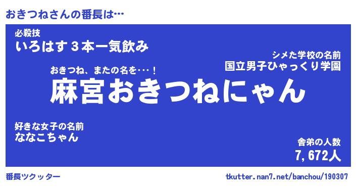 | 欧米人風あだ名 | 『マイケルおきつね』『ウサインおきつね』 |