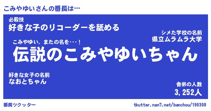 | 肩書あだ名 | 『こみやゆい店長』『こみやゆい大統領』 |