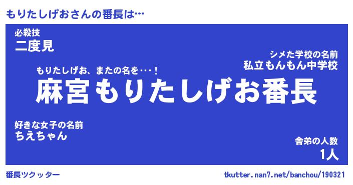| 肩書あだ名 | 『もりたしげお店長』『もりたしげお塾長』 |