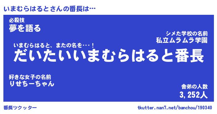 | 意味不明あだ名 | 『ペロリンいまむらはると』 |