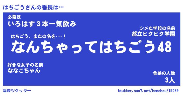 | ピコ太郎風あだ名 | 『ハコ史郎』『ピハ二郎』『ハチ一郎』 |