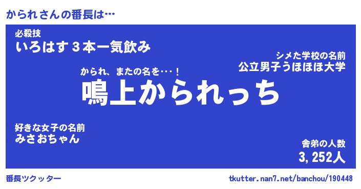 | 猫の名前『からからにゃん』性別『オス』 |