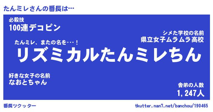 | ヒーロー風カッコイイあだ名 | 『スーパータンミレ』『魔戒騎士タン』 |