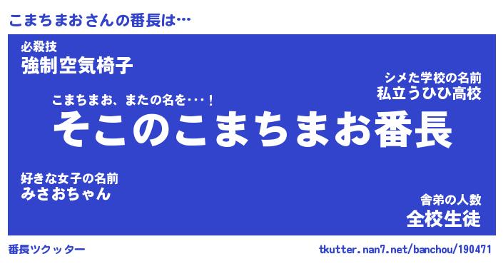 | 肩書あだ名 | 『こまちまお店長』『こまちまお総理大臣』 |