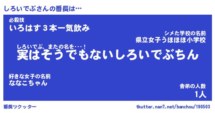 | ヒーロー風カッコイイあだ名 | 『スーパーシロイデブ』『天弓騎士シロ』 |