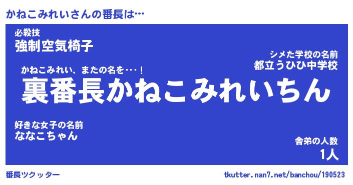 | ヒーロー風カッコイイあだ名 | 『スーパーカネコミレイ』『暗黒騎士カネ』 |