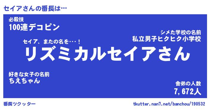 | ピコ太郎風あだ名 | 『セコ次郎』『ピセ四郎』『セイ五郎』 |